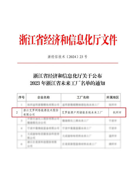2024:“DB电竞能源户用储能系统”上榜浙江省未来工厂